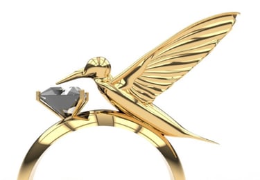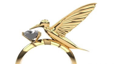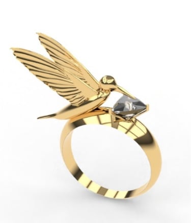 Inspired by the delicate grace of the hummingbird, this ring captures the essence of movement and elegance, with the bird poised to sip from a faceted gem. A true statement of craftsmanship, it adds a unique narrative to my portfolio, blending nature and luxury into a wearable masterpiece.