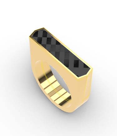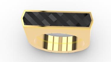 This project presents a minimalistic and innovative ring design that merges carbon fiber with precious metals such as platinum and gold. Inspired by the use of carbon fiber in the automotive industry, this ring embodies strength, lightweight performance, and sleek aesthetics. The contrast between the deep, textured carbon fiber and the polished precious metal creates a bold yet refined statement piece.