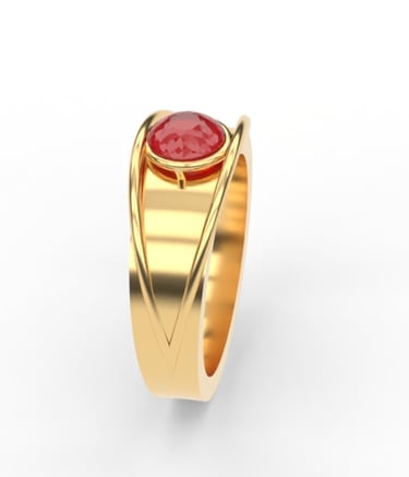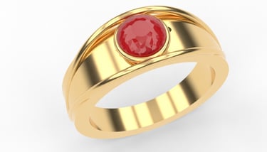 This design presents a striking ruby ring that balances bold elegance with timeless charm. Crafted with 18K yellow gold for a rich, classic look and platinum for a sleek, contemporary edge, it embodies sophistication. The brilliant-cut ruby at its heart enhances its allure, creating a refined statement piece with lasting beauty and value.